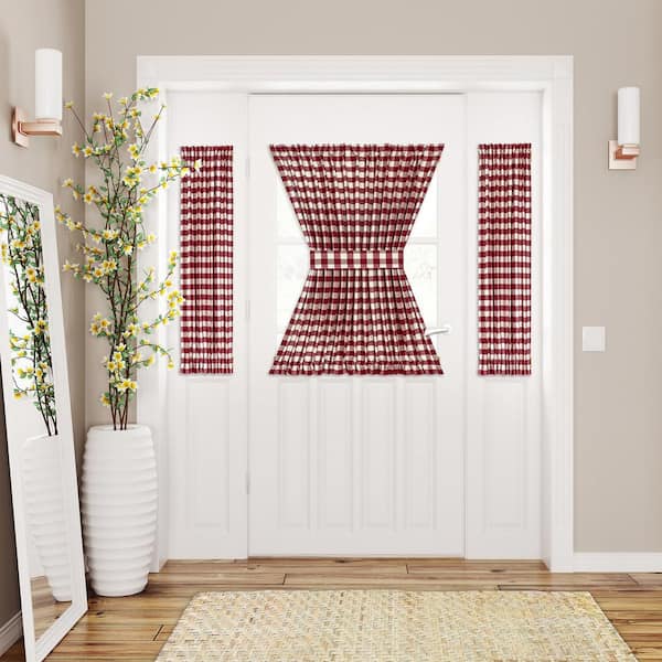 Buffalo Check 54 in. W x 40 in. L Polyester/Cotton Light Filtering Door Panel and Tieback in Burgundy