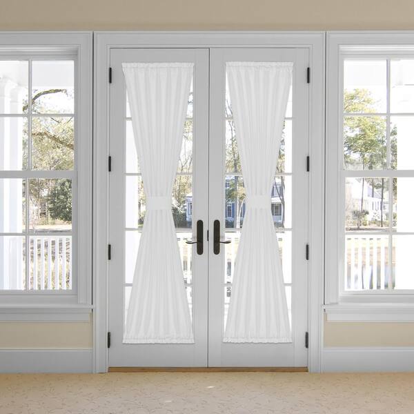 Darcy 25 in. W x 72 in. L Solid Polyester Rod Pocket Light Filtering Door Panel Curtain in White with Tieback