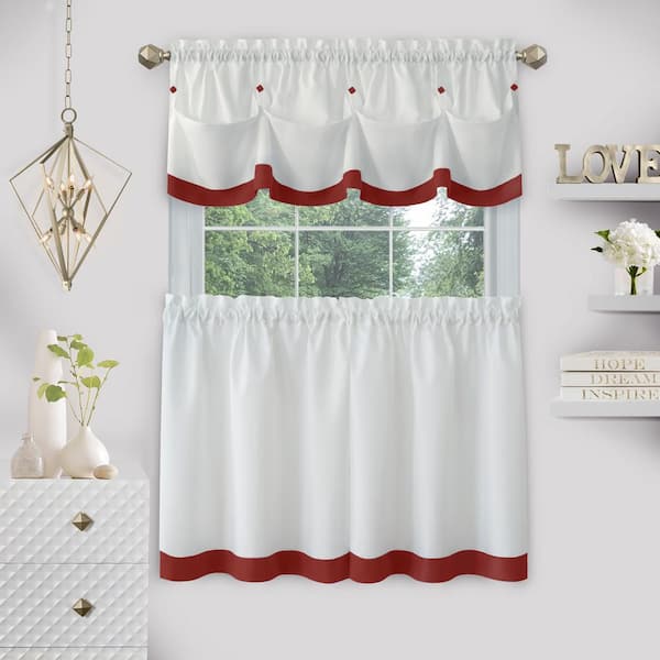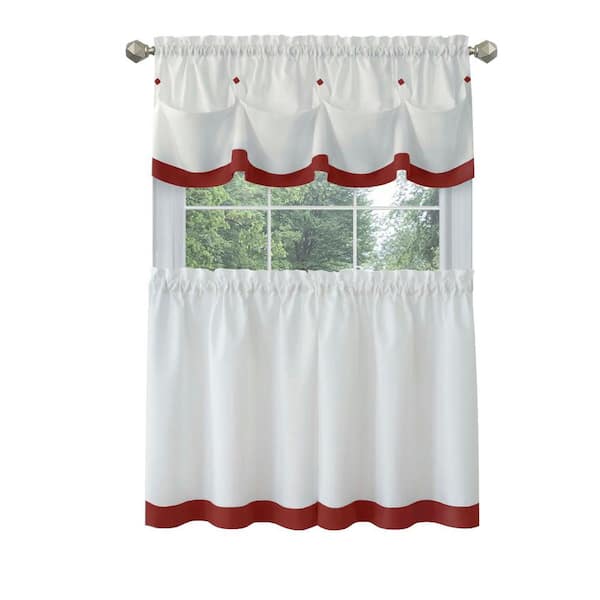 Lana 58 in.W x 36 in. L Polyester Light Filtering Window Rod Pocket Tier and Valance Set In Lava