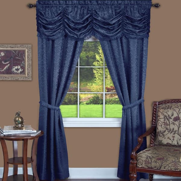 Panache 55 in. W x 84 in. L Polyester Light Filtering 5 Piece Window Curtain Set in Navy