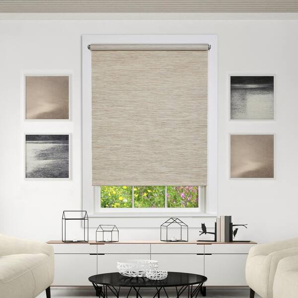 Privacy Natural Cordless Light Filtering Woven Fabric Roller Shade 53 in. W x 72 in. L