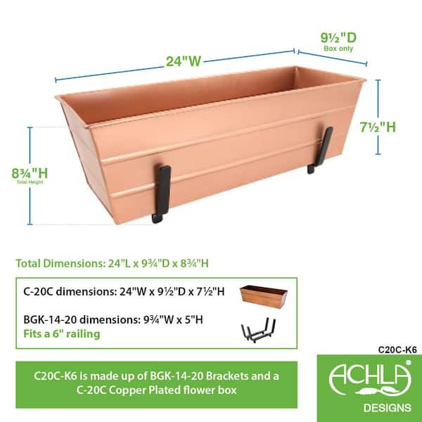 24 in. W Copper Plated Medium Galvanized Steel Flower Box Planter With Brackets for 2 x 6 Railings
