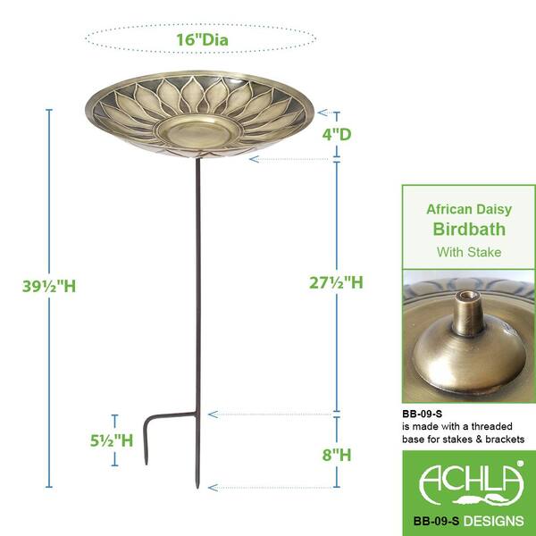 40 in. Tall Antique and Patina Brass African Daisy Birdbath with Stake