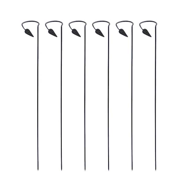 40 in. Tall Black Powder Coated Wrought Iron Garden Stakes for Plants (6-Pack)
