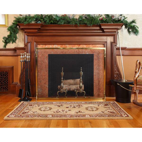 44 in. L Polished Brass 1-Panel Montreal Modern Flat Fireplace Screen