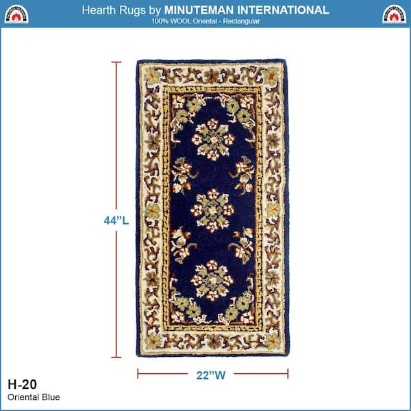 Oriental Rectangular Hearth Rug, 44 Inch Long, Blue