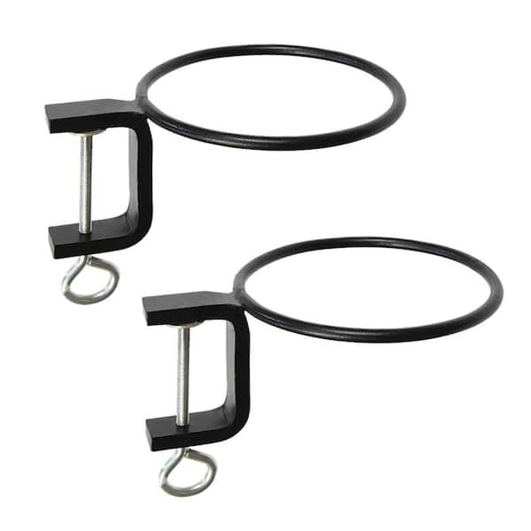Set of 2 Clamp-On Flower Pot Holder Ring Metal Brackets, 6 in. Diameter, Black Powder Coat Finish
