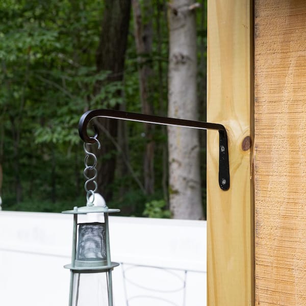 Set of 2 Straight Down Curled Wall Metal Brackets, 12 in. Tall, Black Powder Coat Finish