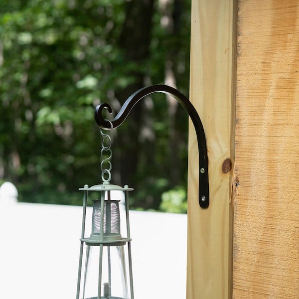 Set of 2 Wall Mounted Up Curled Metal Brackets, 8 in. Tall, Black Powder Coat Finish
