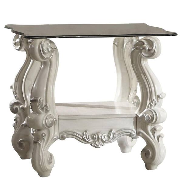 Versailles 28 in. Bone White Finish Square Glass End Table with No Additional Feature