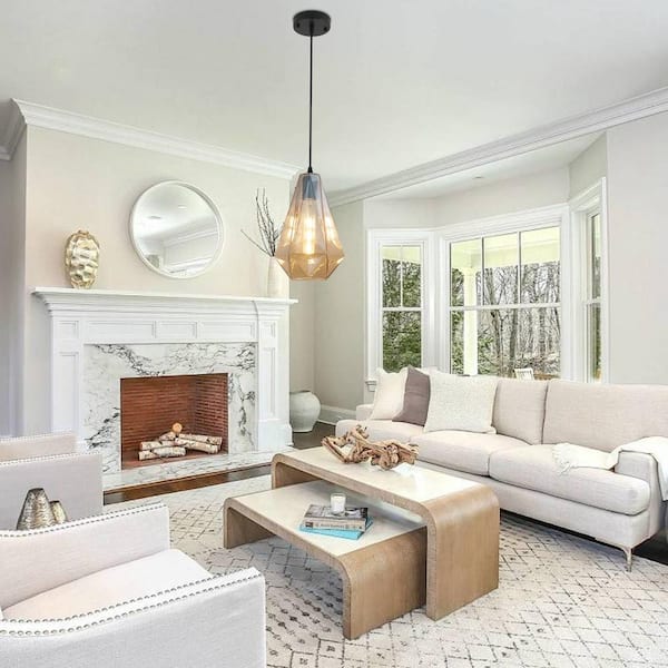 1-Light Amber Single Modern Geometric Pendant Light with Glass Shade, No Bulbs Included