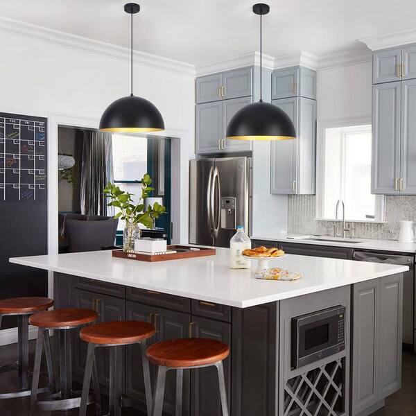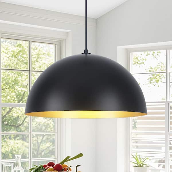 1 Light Black Gold Shaded Farmhouse Pendant Light with Metal Dome Shade for Living Bedroom Room,No Bulbs Included