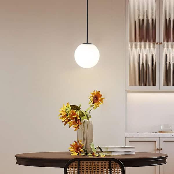 1 Light Black Milky White Shaded Pendant Light with Globe Glass Shade , No Bulbs Included
