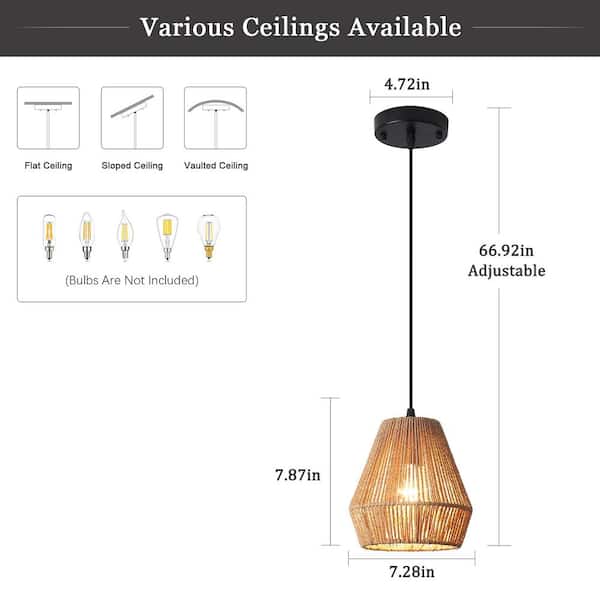 1-Light Black Mini Chandelier with Rattan Shade, No Bulbs Included (Set of 2)