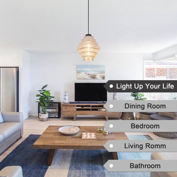 1-Light Black and Amber Simple Vintage Pendant Light with Glass Shade