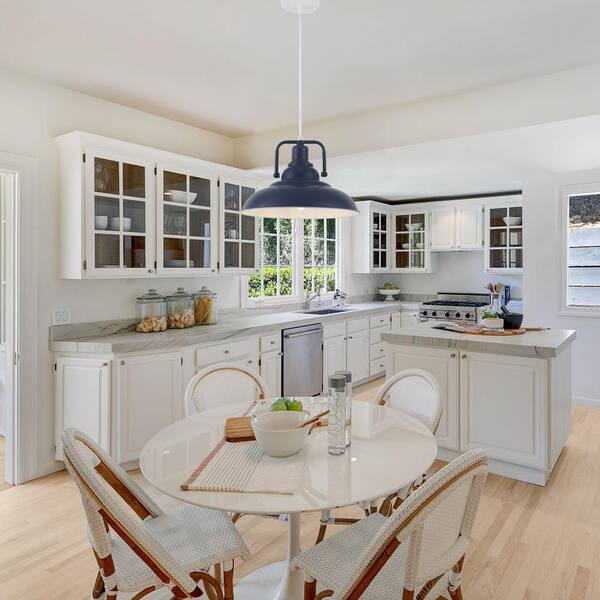 1 Light Blue Dome Industrial Pendant Light with Metal Shade, No Bulbs Included
