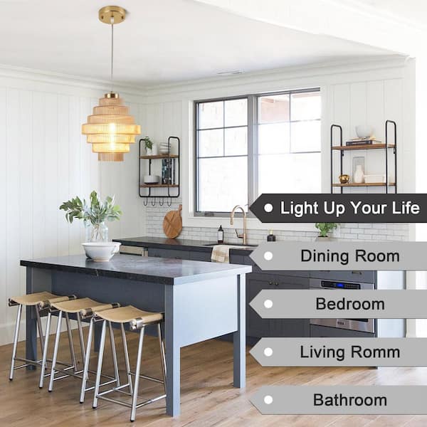1-Light Brass and Amber Simple Vintage Pendant Light with Glass Shade