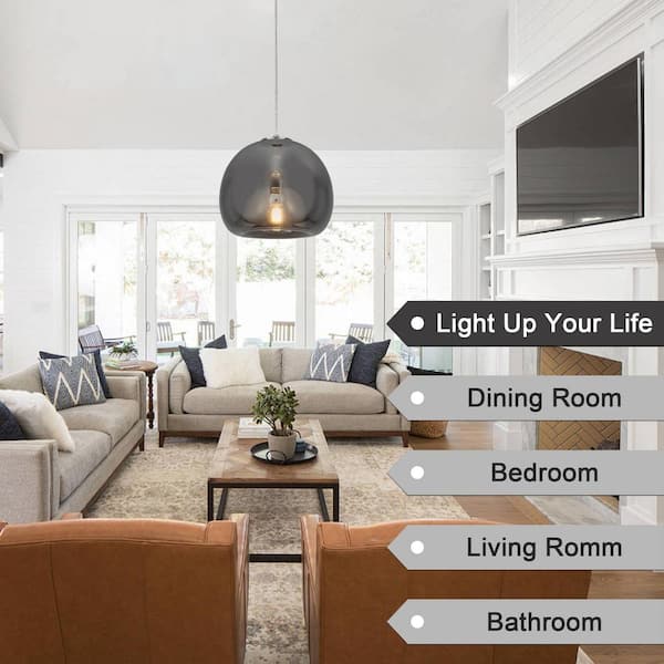 1-Light Chrome and Smoke Gray Globe Pendant Light with Glass Shade, Adjustable Hanging Length