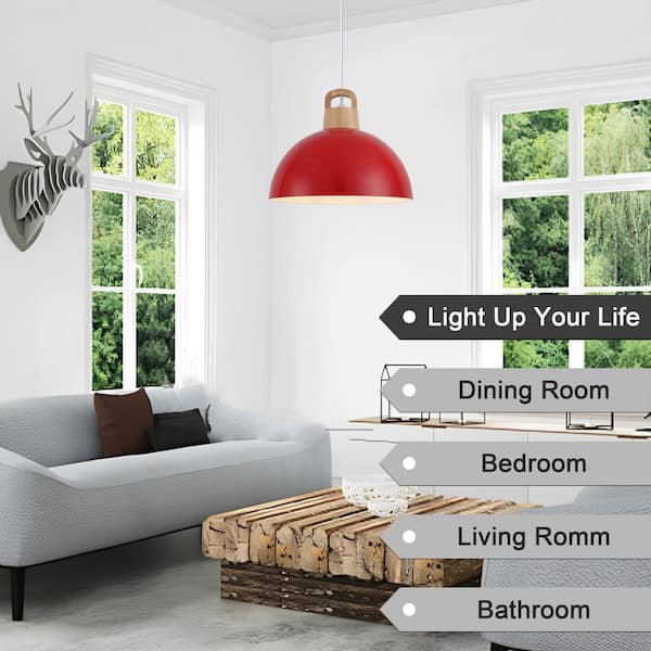 1-Light Red Vintage Pendant Light Adjustable Ceiling Hanging Lights with Metal Shade