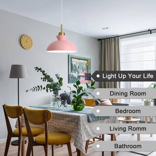 1-Light Simple Pink Single Dome Pendant Light with Metal Shade