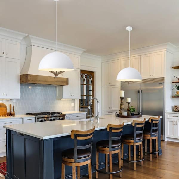 1 Light White Shaded Farmhouse Pendant Light with Metal Dome Shade for Living Bedroom Room,No Bulbs Included