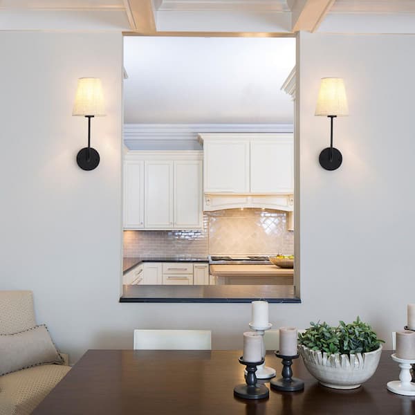 10.35 in. 2 Light Black Vanity Light with Linen Beige Fabric Shade(Set of 2)