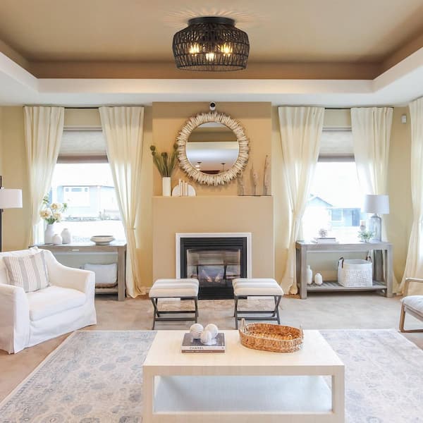 12.59 in. 3-Light Semi-Flush Mount With Hemp Ropes Shade and No Bulbs Included
