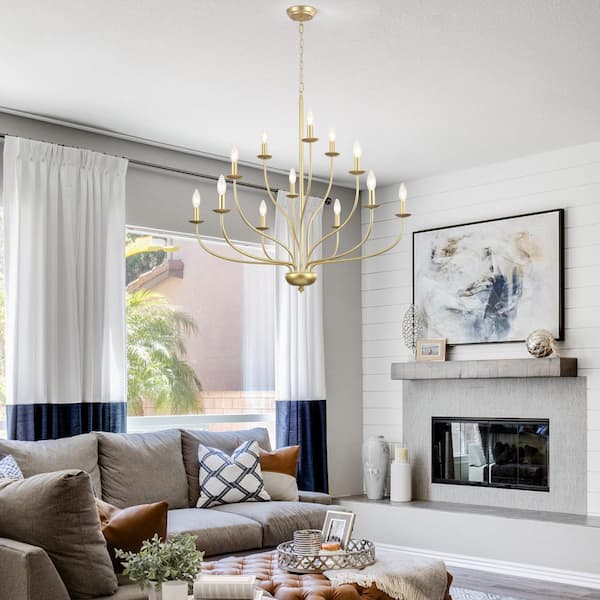 12 - Light 3-Tier Gold Dimmable Classic/Traditional Chandelier Kitchen Island with no Bulbs Included