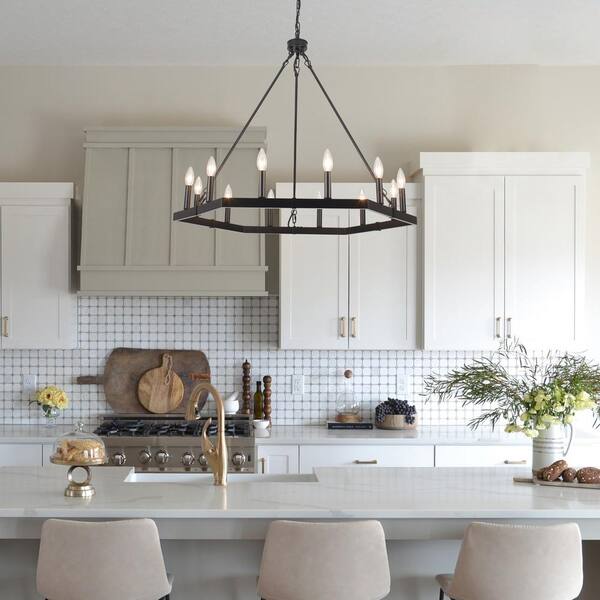 12 - Light Black Dimmable Hexagon Wagon Wheel Chandelier for Farmhouse Kitchen Island with No Bulbs Included