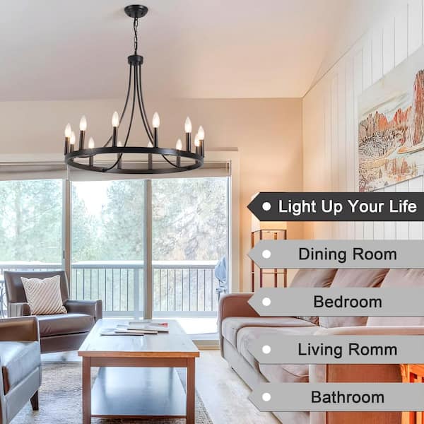 12-Light Black Modern Adjustable Height Light Fixture Wagon Wheel Chandelier