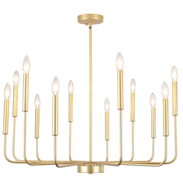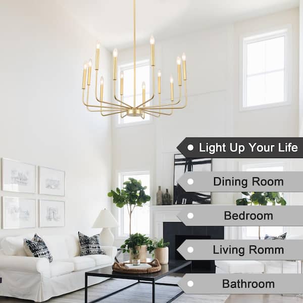 12-Light Gold Modern Candle Chandelier, Adjustable Hanging Light Fixture