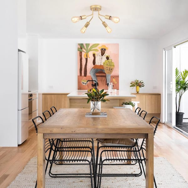 14.76 in. 4-Light Gold Modern Sputnik Linear Semi- Flush Mount Ceiling Light Chandeliers for Bedrooms
