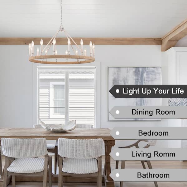 16-Light Beige Gray Antique Textured Traditional Farmhouse Hanging Wagon Wheel Candlestick Chandelier