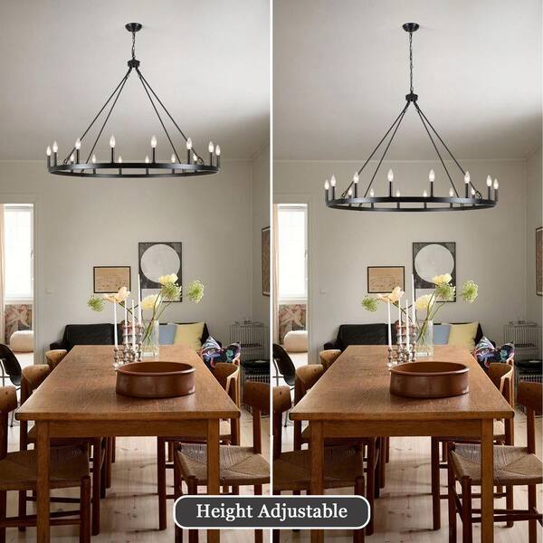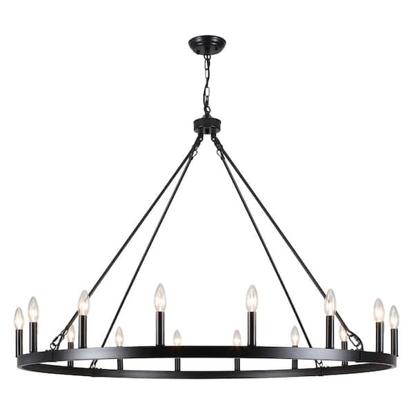 16-Light Black Farmhouse Wagon Wheel Candlestick Chandelier