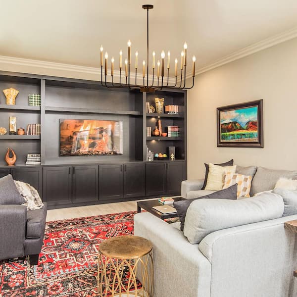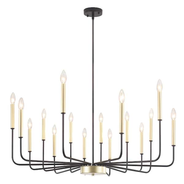 16-Light Black Gold Dimmable Farmhouse Candle Chandelier for Kitchen Island with No Bulbs Included