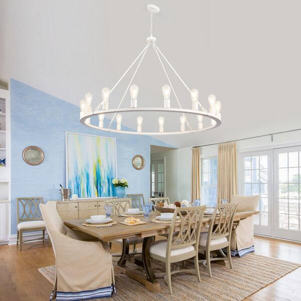 16 - Light Distressed White Dimmable Modern Wagon Wheel Chandelier for Farmhouse Kitchen Island with no bulbs included