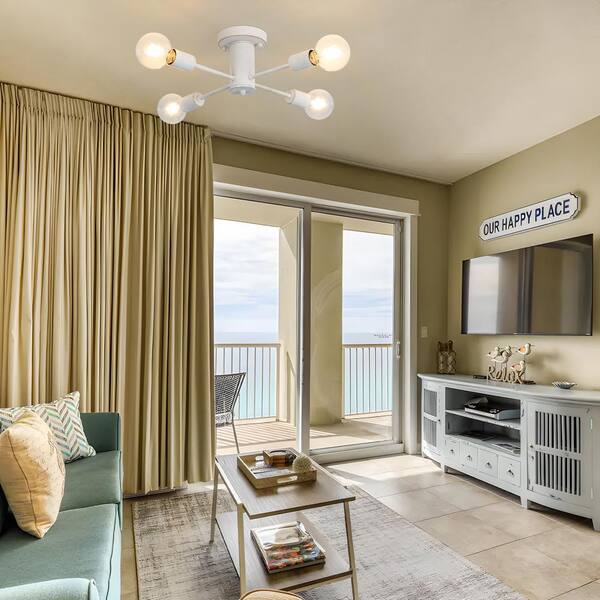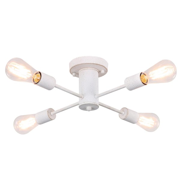 17.5 in. 4-Light Distressed White Sputnik Transitional Flush Mount Ceiling Lights