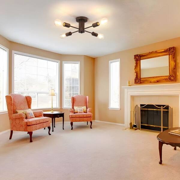 17.5 in. 4-Light Imitation Wood Grain Sputnik Transitional Flush Mount Ceiling Lights