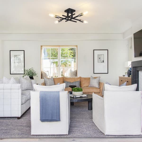 18.11 in. 4-Light Black and Nickel Modern Sputnik Semi- Flush Mount Ceiling Lights with No Bulbs Included
