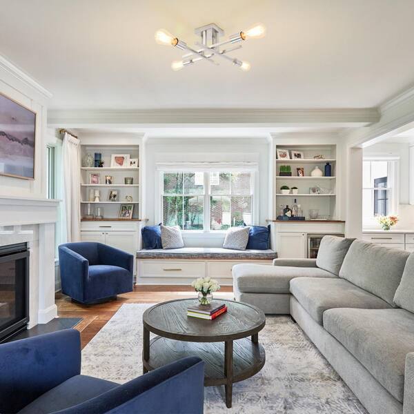 18.11 in. 4-Light Nickel Modern Sputnik Semi- Flush Mount Ceiling Lights with No Bulbs Included