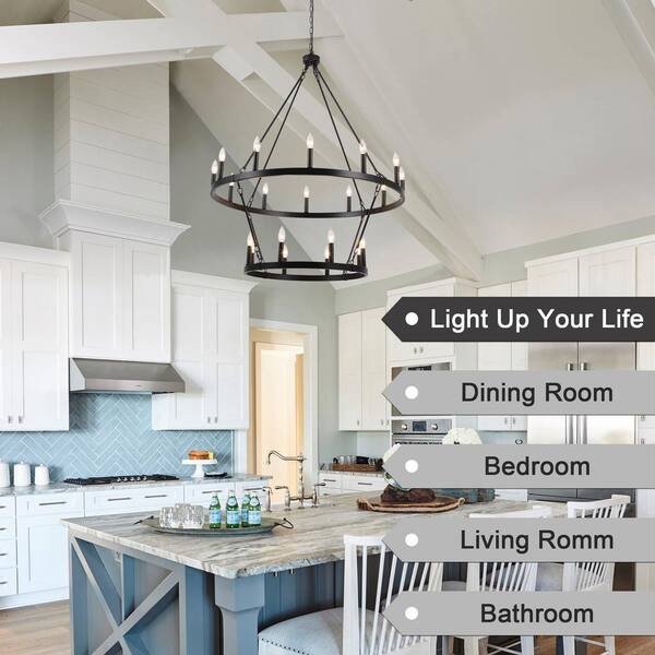 20-Light 2-Tier Black Farmhouse Wagon Wheel Candlestick Chandelier
