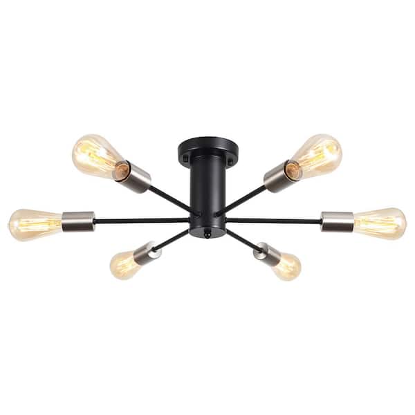 21.84 in. 6-Light Black and Nickel Sputnik Transitional Flush Mount Ceiling Lights