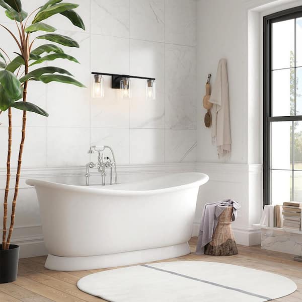 22.8 in. 3-Light Black and Nickel Vanity Light with Clear Glass Shade