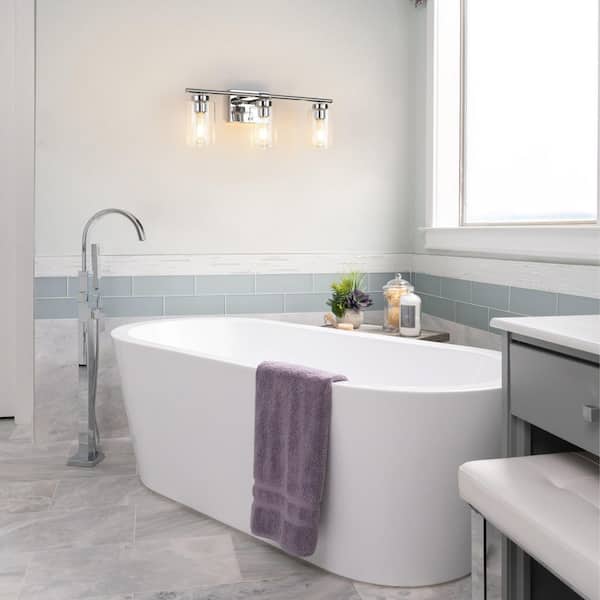 22.8 in. 3-Light Chrome Vanity Light with Clear Glass Shade