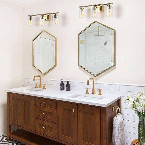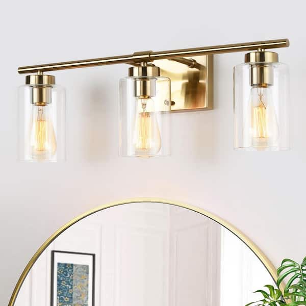 22.8 in. 3-Light Gold Vanity Light with Clear Glass Shade