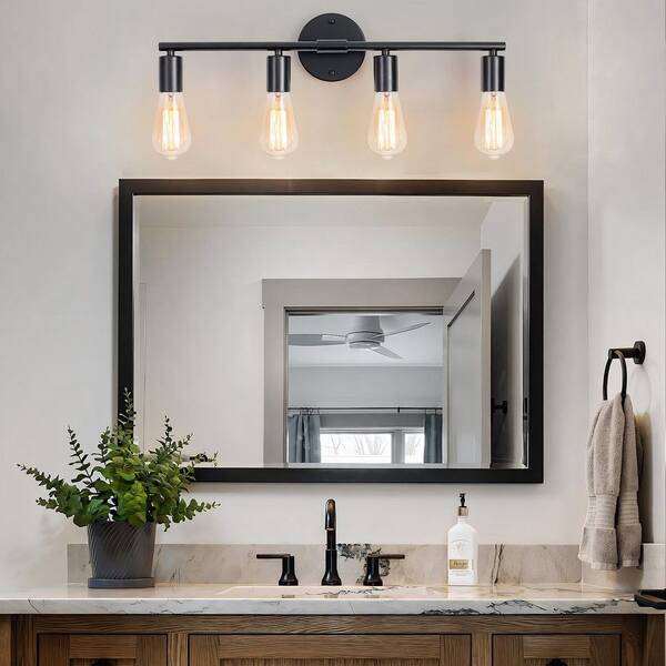 22.8 in 4-Light Black Industrial Metal Bathroom Vanity Light