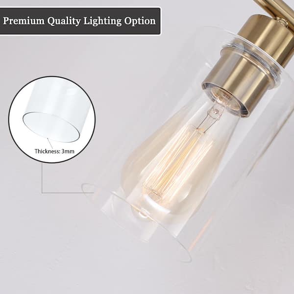 22.83 in. 3-Light Brass Modern Vanity Light with Clear Glass Shade