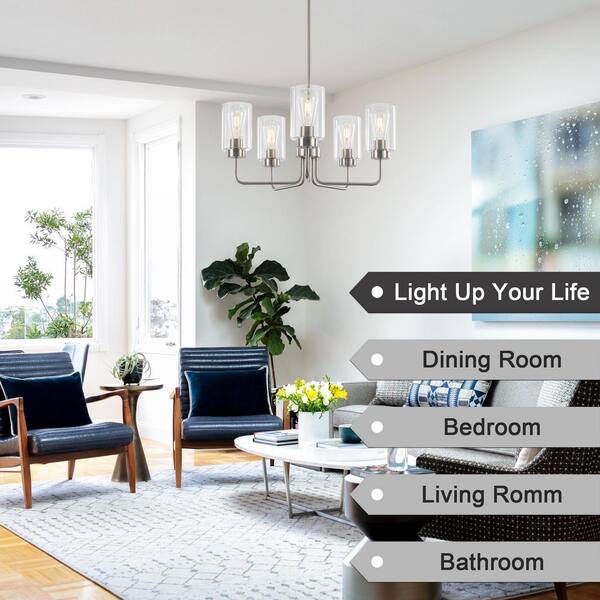 22 in. 5-Light Sand Nickel Contemporary Transitional Chandelier with Clear Glass Shade for Dining Room