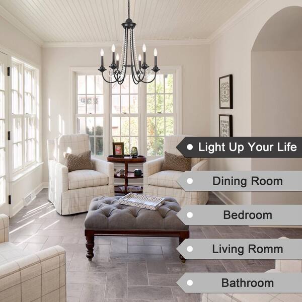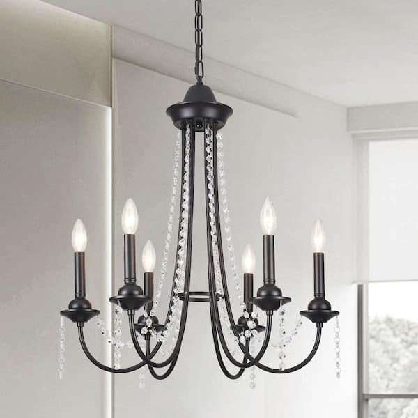 23.62 in. 6-Light Black Crystal Candle Chandelier French Country Ornate Pendant Light, No Bulbs Included