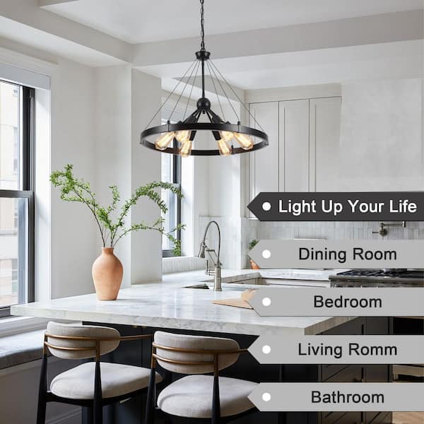 23.62 in. 6-Light Black Wagon Wheel Satellite Chandelier for Living Room with No Bulbs Included